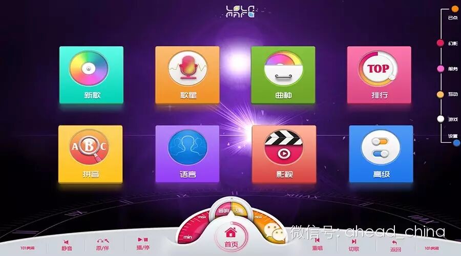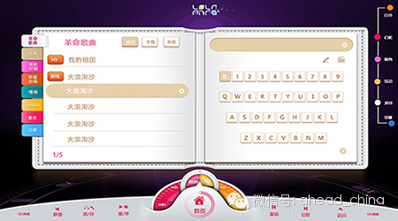 “小清新”点歌界面,有更多完善的功能,比如“缺歌提交”“评分排行” “K歌达人排行榜”等功能,更适用于多种语言。 心动不如行动,大家赶紧来体验吧!